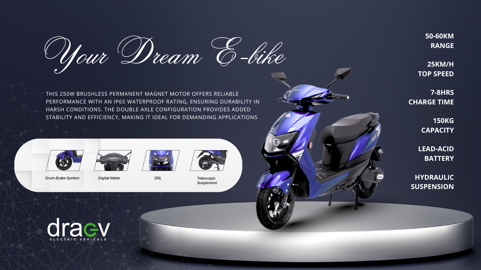 DraEV is a forward-thinking company committed to revolutionizing the transportation industry with cutting-edge electric vehicles (EVs). We are passionate about sustainable mobility, providing eco-friendly and efficient transportation solutions that contribute to a cleaner, greener planet. At DraEV, we offer a range of electric vehicles designed to meet the diverse needs of modern consumers, from urban commuters to businesses looking to integrate EVs into their fleets.